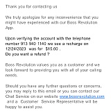 I complained about Boss revolutions Promo code scam. And I tried to forward the e mail but they have unreachable e mail. But asking me for reference number which doesn't exist. I attached the e mail I got where by boss revolution admitted their mistake.