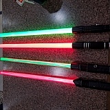 In the picture, the sabers on the two sabers on the bottom are two of our 3 originals (they still work!), and the top two are the new ones. The picture doesn't even do justice to how much more awesome the new ones are, and we already thought the old ones were great!