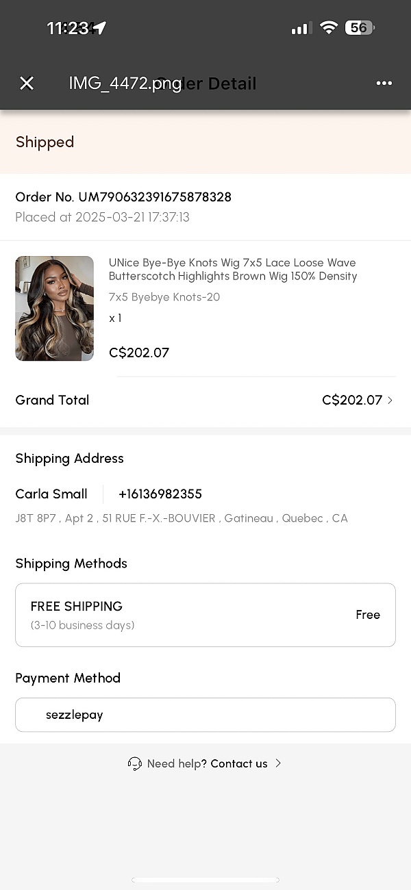It was a very easy experience shopping for my wig. And it arrived to my house faster than the estimated delivery time the website gave me. And unice generously gave me a lot of coupons to use on this wig and my next purchas.