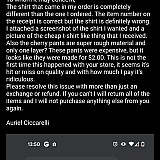 Second time I got the wrong order from them, I asked for a resolution other than just a refund or replacement and all they sent me was their standard cookie cutter reply. Not even a personal reply apologizing, just a pre made email reply for returns. I'm done with this place! Don't order from them! I attached pictures of what I order and a picture of the poor quality t-shirt they sent me as well as my email and their reply.