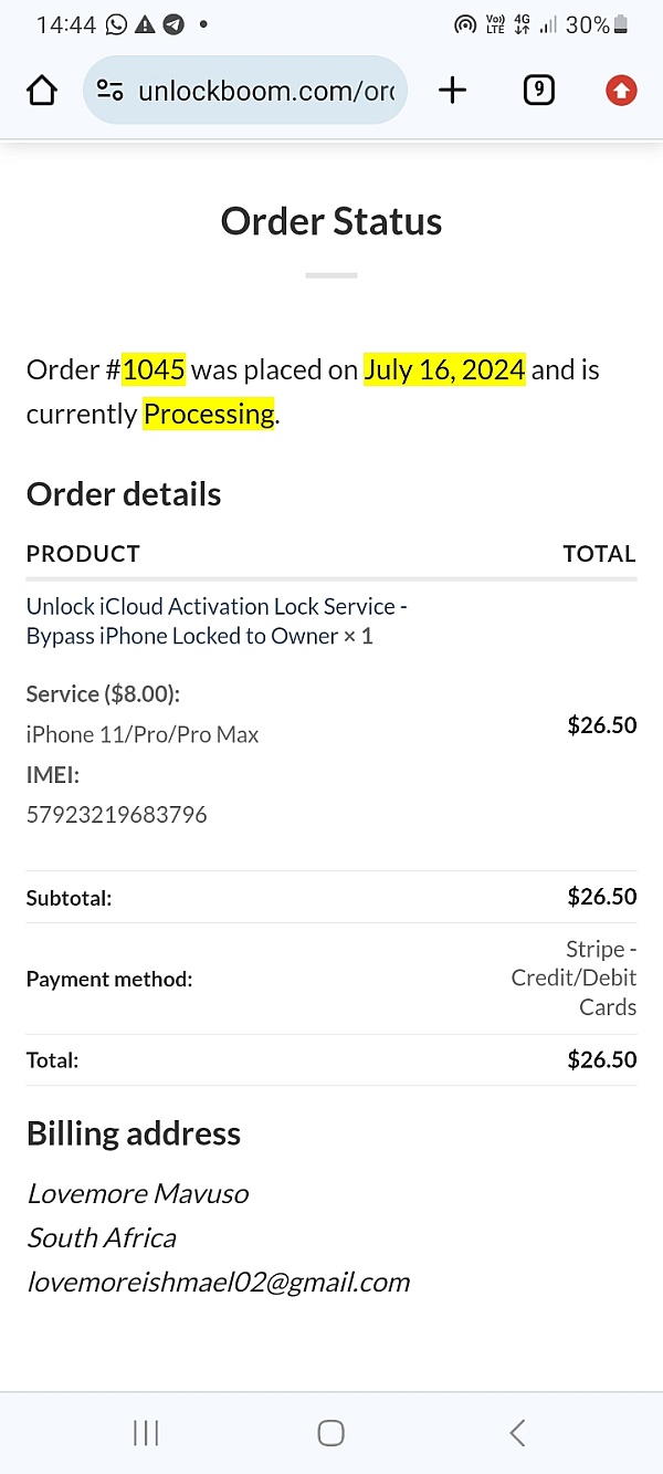 They are stealing my money, do not shop on this website, they never answer the phone or unlock it, they are taking all my money, I will never use this service in my life, they are scammers. Comments are their own. Order No: *******. I hope you respond to this comment since you responded to the email.