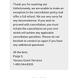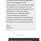 I have documented all the errors and breaches of law your company has committed, including breaking your own policy. I will legally pursue the refund of my money and continue to alert other guests on all your websites about your unethical practices and appalling treatment of guests!