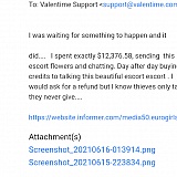 I emailed valentine.com. I was asked to send a link of the lady's escort profile and they send me this.