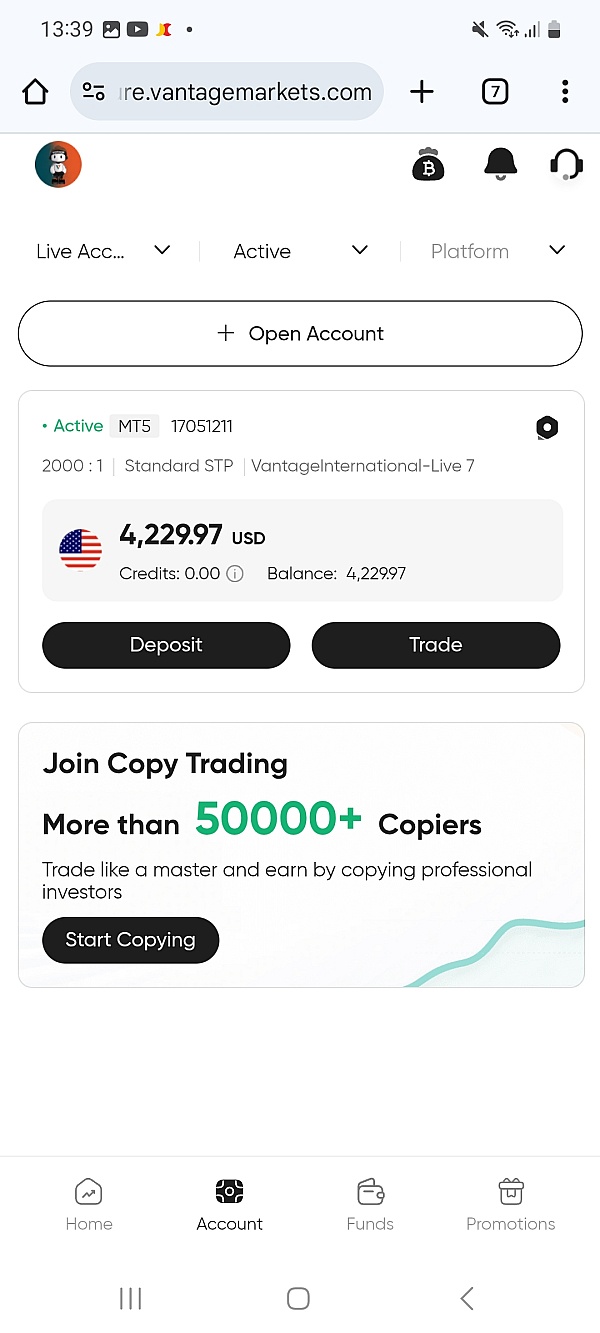 I started my trading journey 6 months ago, and I've tried different platforms, but Vantage was the most reliable. The platforms are great, fast, and no issues with withdrawals. Customer service was very helpful too!