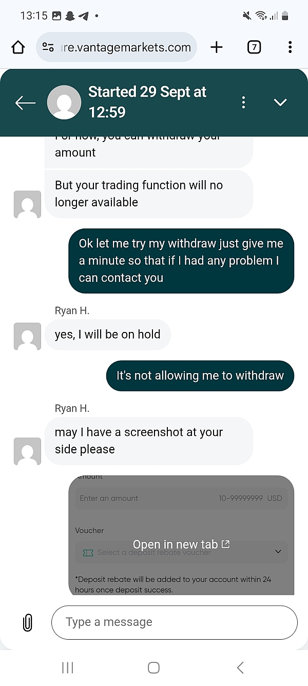 🚫 I Lost $20,000 Due to Vantage Copy Trading App — Faulty Risk Settings, No Accountability They are keep closing ticket also they are keep answering same. After 2 month instead of fixing issue they prepared document to tell we are very clear everything on document. They change all document and rule. I am going to attached ticket which they are keep closing also they deleted my ticket #******* I had a terrible experience with Vantage Markets' copy trading platform which led to the complete loss of my $20,000 USD trading account. I feel it's important to share this so others don't fall into the same trap. 🔧 Faulty Risk Settings Vantage offers a setting called "Equivalent Use Margin" inside their copy trading app. The purpose of this setting — according to their own description — is to control and limit your exposure by adjusting the lot size and margin use proportionally. I had carefully selected my settings, expecting that the system would cap the lot size or at least maintain strict control based on my chosen margin equivalence. But in reality, this feature didn't work as intended: The copy system sometimes took too many trades. It increased the lot sizes without my approval. It completely disregarded the limits I set in the application. 💸 Account Wiped Out Because of this, my trades quickly spiraled out of control. The copy trader was using a high-risk strategy, and the system exposed my account to far greater lot sizes than expected. I ended up losing 100% of my $20,000 balance. 🧾 No Proper Support or Resolution I contacted Vantage support, expecting at least a proper explanation or partial compensation. Their response was extremely disappointing. They said: "Just because you select 50.0 doesn't mean the application can limit to 50.0 lots." This makes absolutely no sense. If selecting a specific margin or lot-size equivalent doesn't actually limit anything, then what's the point of having that option at all? They had no real answer, no fix, and no accountability. Misleading Features — Huge Risk to Traders This isn't just about a bad trade — it's about a flawed system that misleads traders into thinking they are managing risk, when in reality the app completely ignores those limits. I believe this is either: A critical software failure, or Negligent design that can lead to massive losses for unsuspecting users. Final Warning If you are thinking about using Vantage's copy trading app, stay away — especially if you're relying on their risk settings to protect your capital. The system is unreliable, and support will not help you once things go wrong. I would never trust this platform again and strongly urge others to fully test any features with a demo account before investing real money — especially when it comes to copy trading or risk automation.