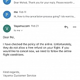 And, I applied for a cancellation and refund of my flight ticket through Vayama website on Feb 7, but Vayama hasn't canceled my flight or refund me any money till now.