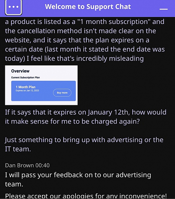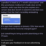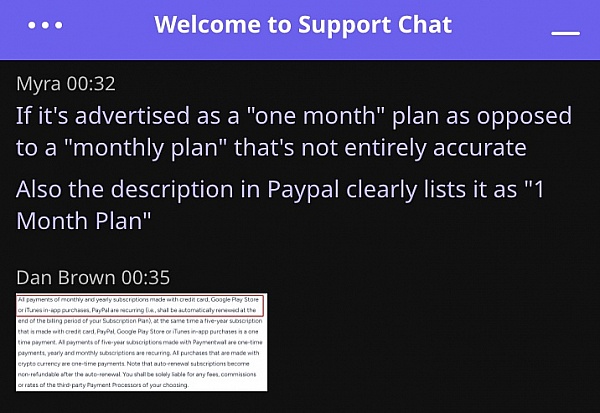 I'm really not the Karen type for simple mistakes, but the product description on Veepn's website is false. I purchased a "1 month plan" on November 12th, 2022 and was clearly shown on my account that the service would expire December 12th, 2022. However, I was charged again on December 12th, and there was no way to cancel the subscription from Veepn's website. I had to cancel the subscription via paypal where it clearly stated that it was a 1 month purchase. It's also listed as "IT Research" and not "Veepn" so it took a hot minute to find out what service the subscription was for.