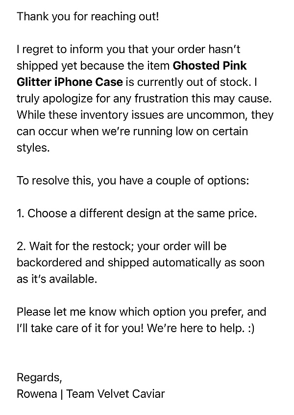 I reached out to this company for a case I purchased that I was dissatisfied with. They got back to me the same day and offered me an exchange of any case regardless of the price difference. The new case came very quickly along with a free gift. I have purchased many cases and decals from this seller and have been pleased with the customer service I received as well as the cases. Thank you for being a great vendor I will continue to be a customer.