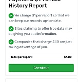 Total scam! This company false advertises $1 dollar reports only to find out they charged me $1 twice, then $29.95. All at the same time. The report had no information about the car at all. I was able to get my refund in minutes only bc I harassed them about it. Now I'm afraid they will keep charging my card, avoid this website at ALL COSTS!