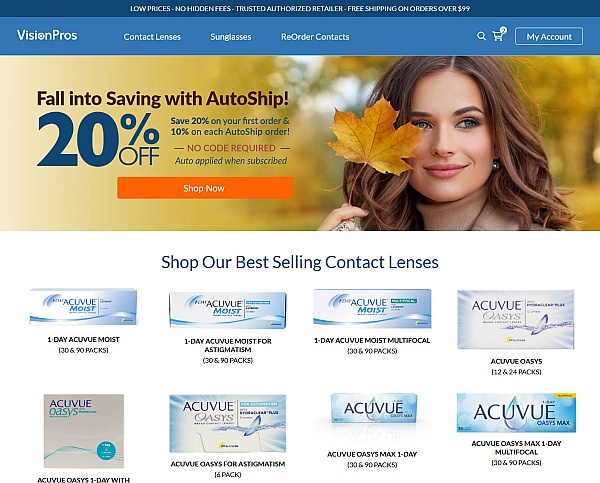 VisionPros offers incredible prices on all contact lenses, eyeglasses, and sun glasses. We are a family-owned online optical store based in Canada. Shop contact lenses and eyeglasses today!