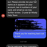 Well on 9/22/23 I had $1,400 taken from myWisely account fraudulently. I've been waiting on the correspondence letter I have to sign and send back with 10 days… today is 10/23/23 still no letter! But I did see another review on here a guy said he contacted ADP the company that owns Wisely through facebook and sent them a message, so I took a chance and did the same thing. And I promise you guys a rep from ADP sent a message back within a hour and asked for my Full Name and last 4 of my account. That was at 8am this morning now it's 1pm(same day) I just checked my acct and have the FULL $1,400 credit back into my acct. Don't waste your time talking to those foreigners at Wisely customer service that don't care! Contact ADP on Facebook messenger and you will have no worries. I hope this review will help everyone on here like the previous guy's review helped me!