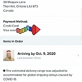 Other items ordered on June 2 and they were supposed to be received on July 11, changed to Aug. 23 and now after checking, they changed again to Sept. 30.