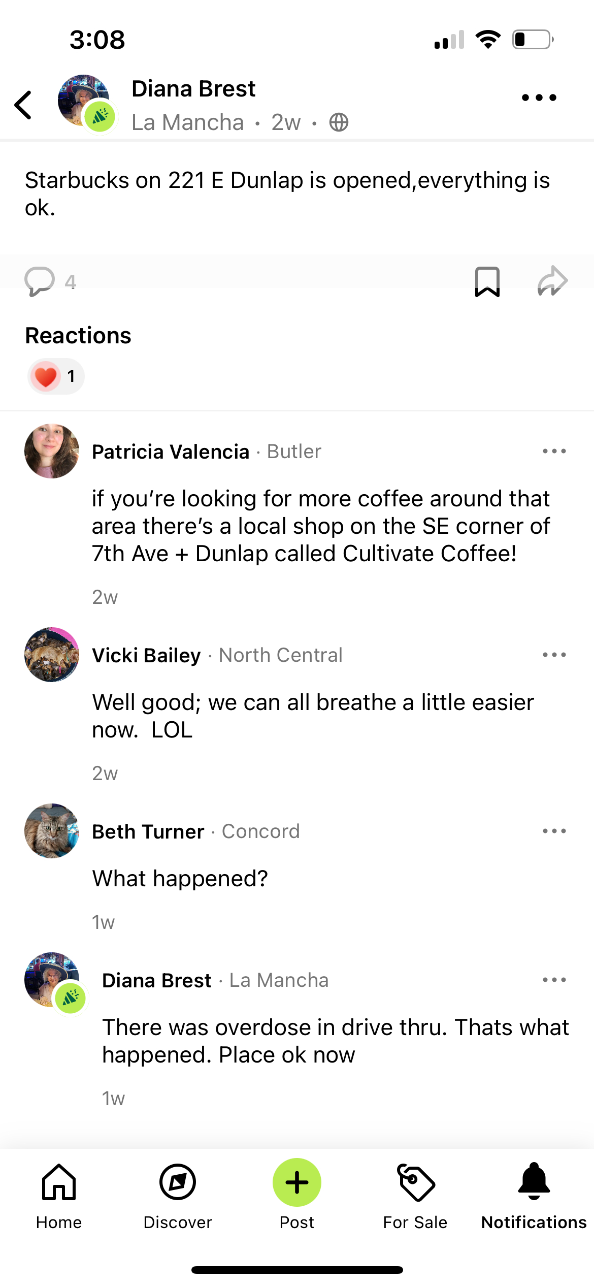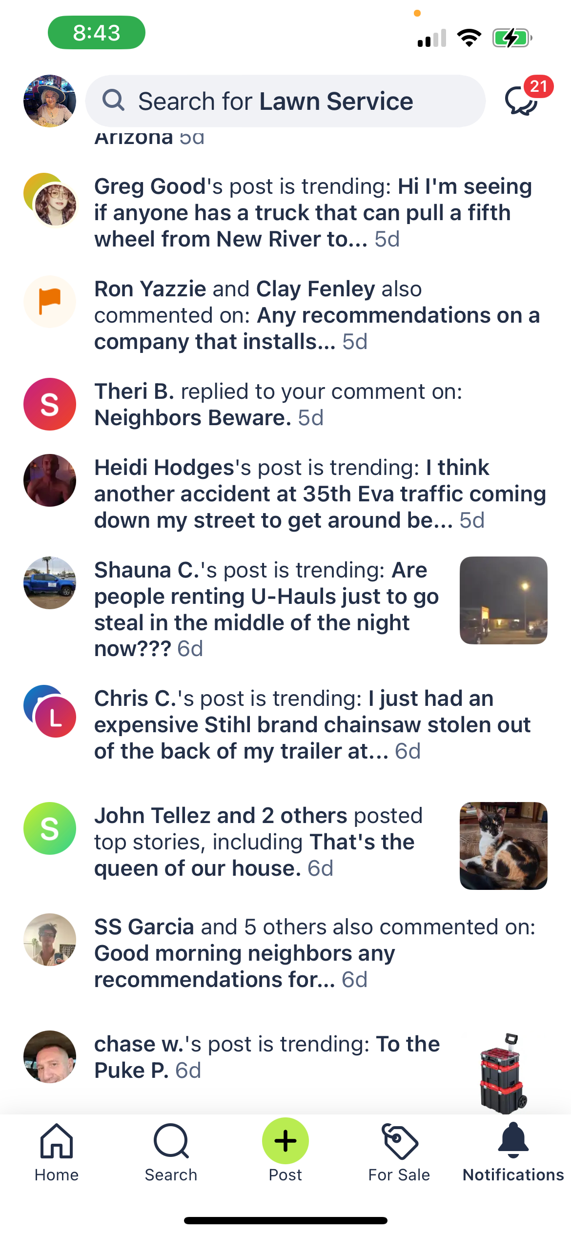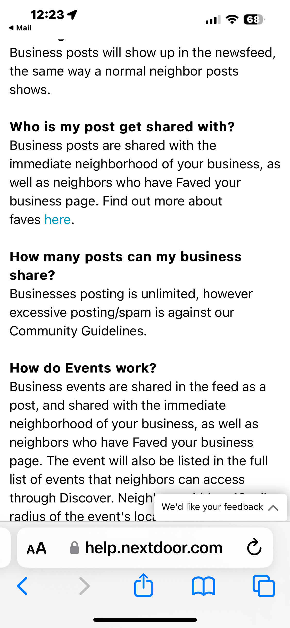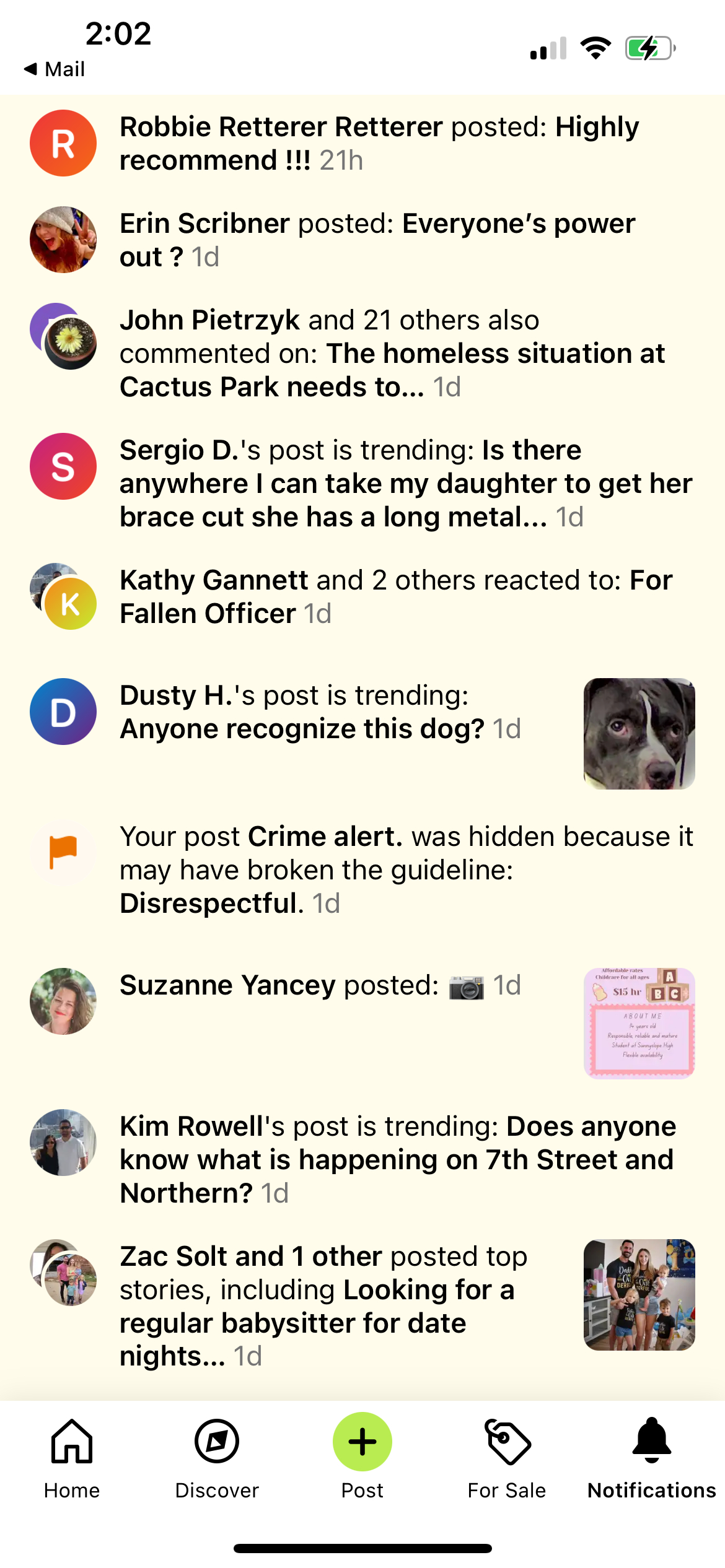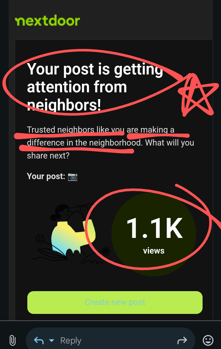 Nextdoor is full of spiteful Karen's. You can't ask about your community because they allow your real info you get threats through post office. Both times it occurred it was a keyboard Ken who thought he had the right to send threats through the mail. Nextdoor will do nothing not against there guidelines. When you have to involve police it's an app you don't need to bother with. Learned the hard way people on that site think they own you, can scare you or threaten you and get away with it. Never again,