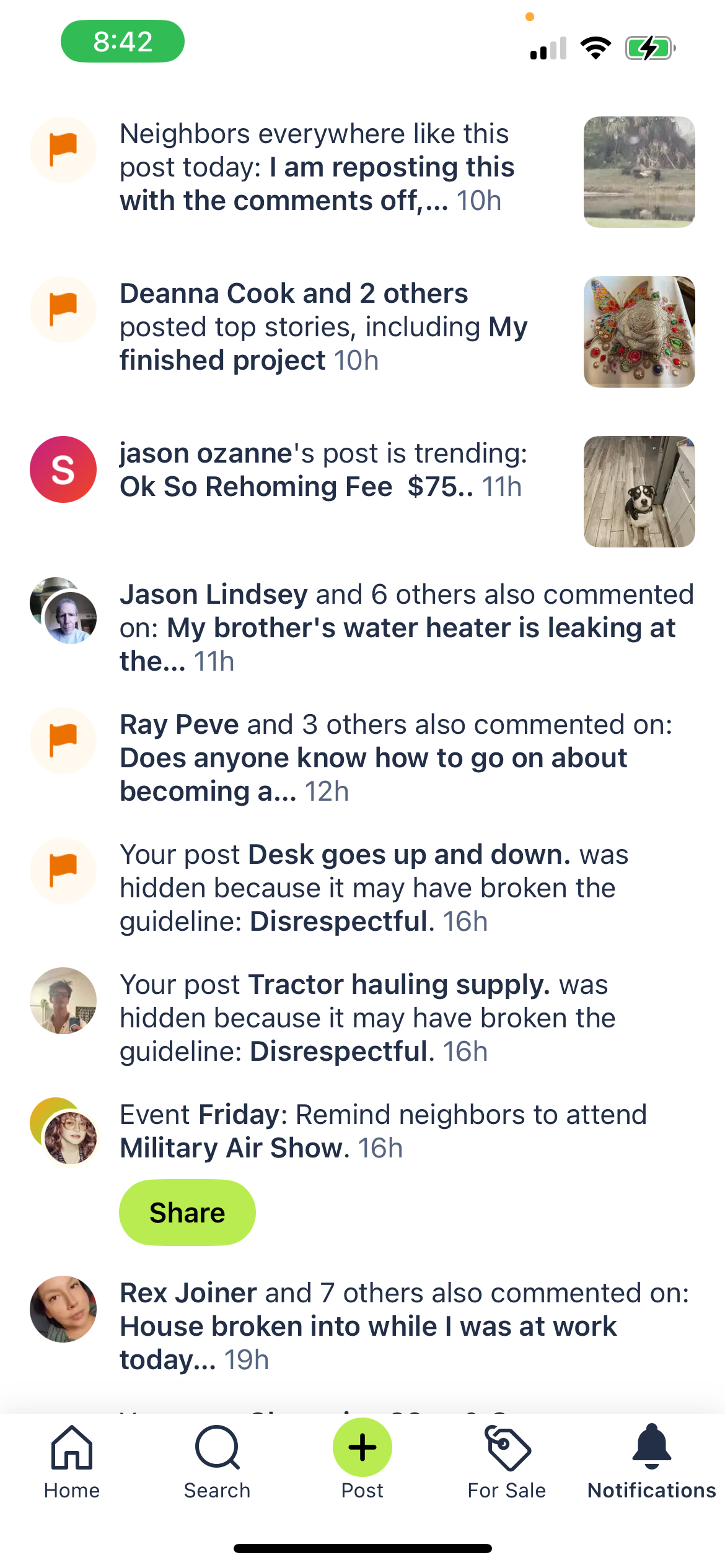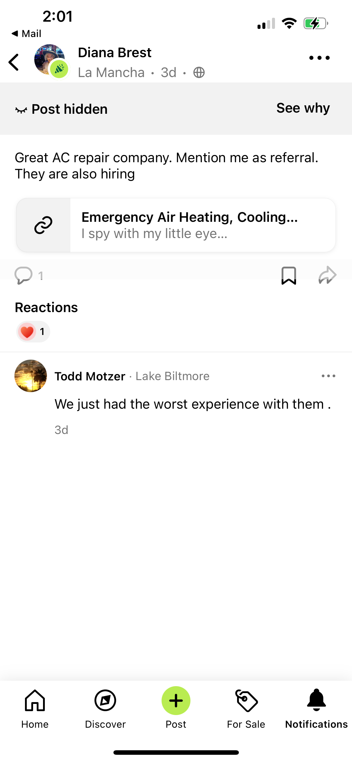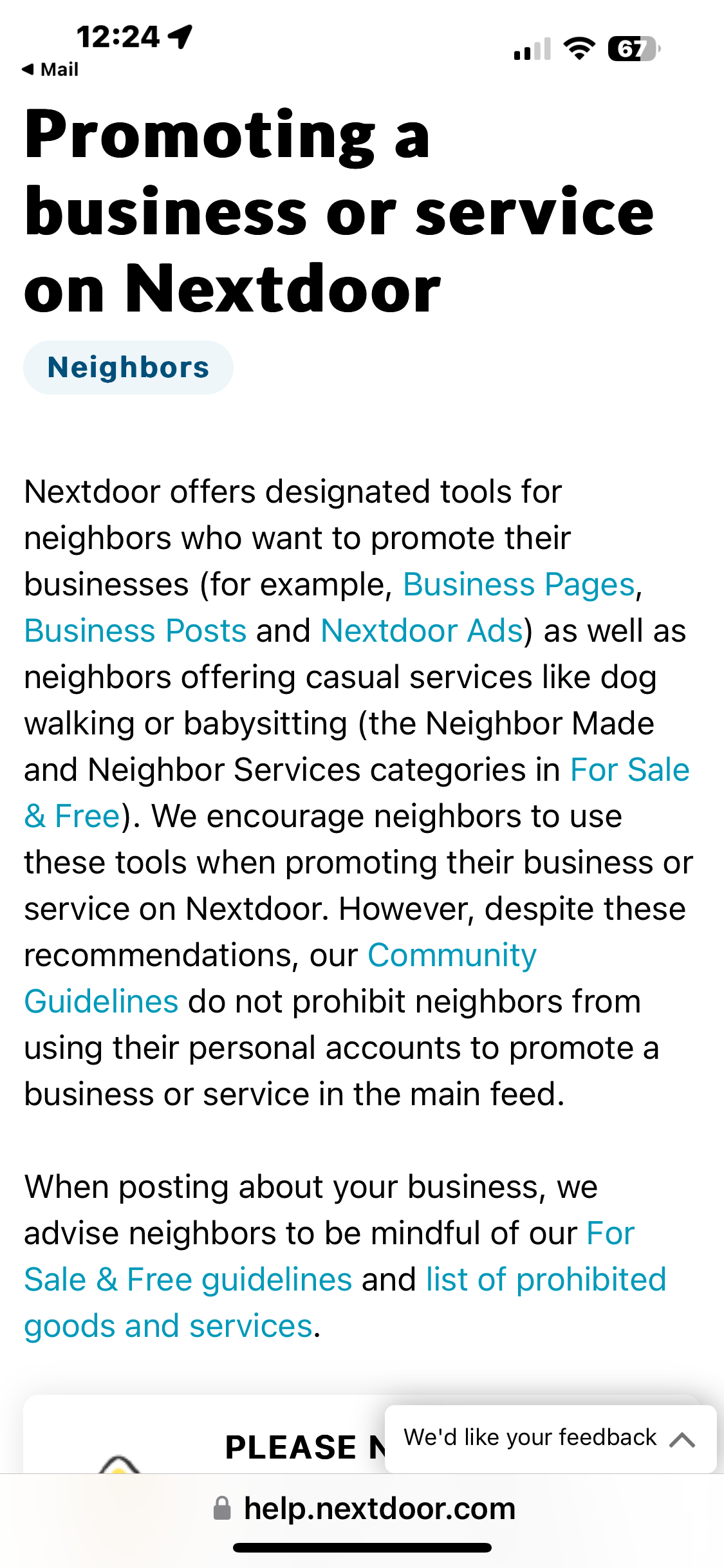 The moderators in any local area of Nextdoor just take down whatever they want. It doesn't matter what the guidelines are. The people working as moderators for next door are idiots. Their own personal preferences and ideologies enter into their editing of the website. It's a bunch of Karens that moderate these things. Absolutely ridiculous and unless this company gets bought I don't see how they survive. Who wants to advertise on Nextdoor? You'd have to be a complete moron. I had posted a couple political things and they hid them. So I wouldn't post any more but they just suspended my account over the posts that they already hid. If the posts are already hidden what am I supposed to do- delete them anyway? They've already been hidden so no one can see them. If no one can see them what's the point of suspending my account for 3 days? Unbelievable stupidity runs rampant through the moderators of Nextdoor. It's Karen Central.