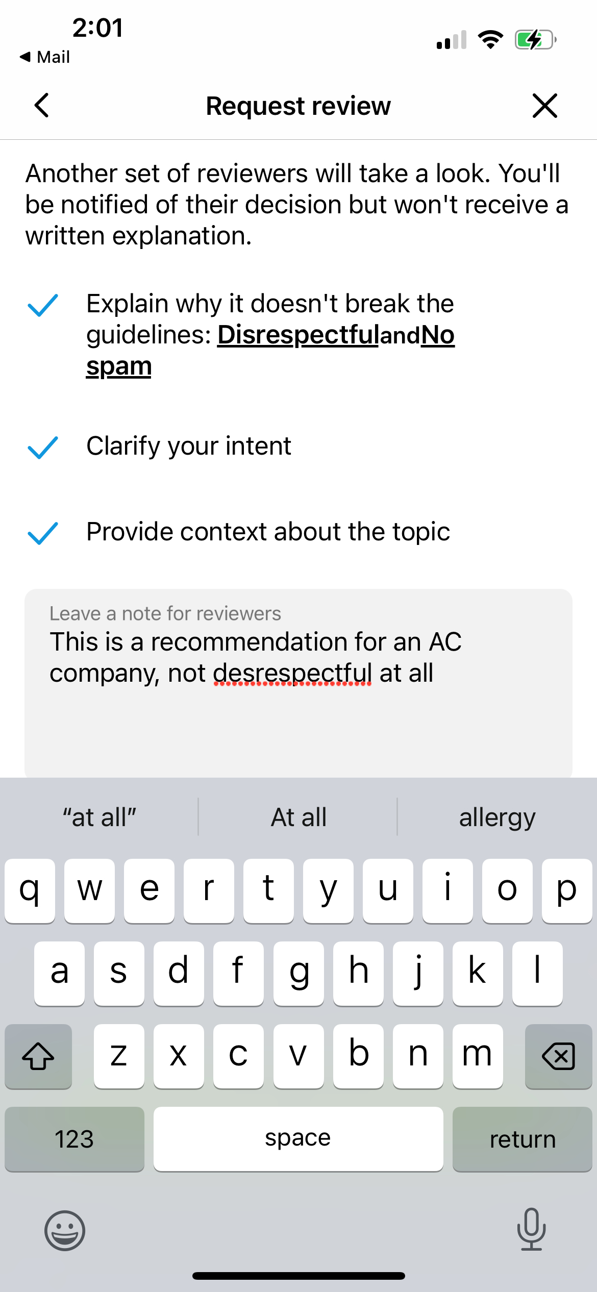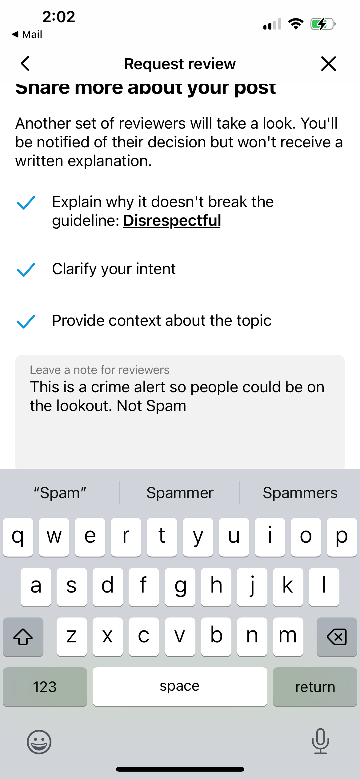 Everytime I put a post in Nextdoor,Nextdoor has someone target all my comments as derespectful, when they are not. I posted animal shelter that needs an ac, & a dog that needs a home. They are not derespectful at all. I want it stopped.I appeal & my appeals get denied