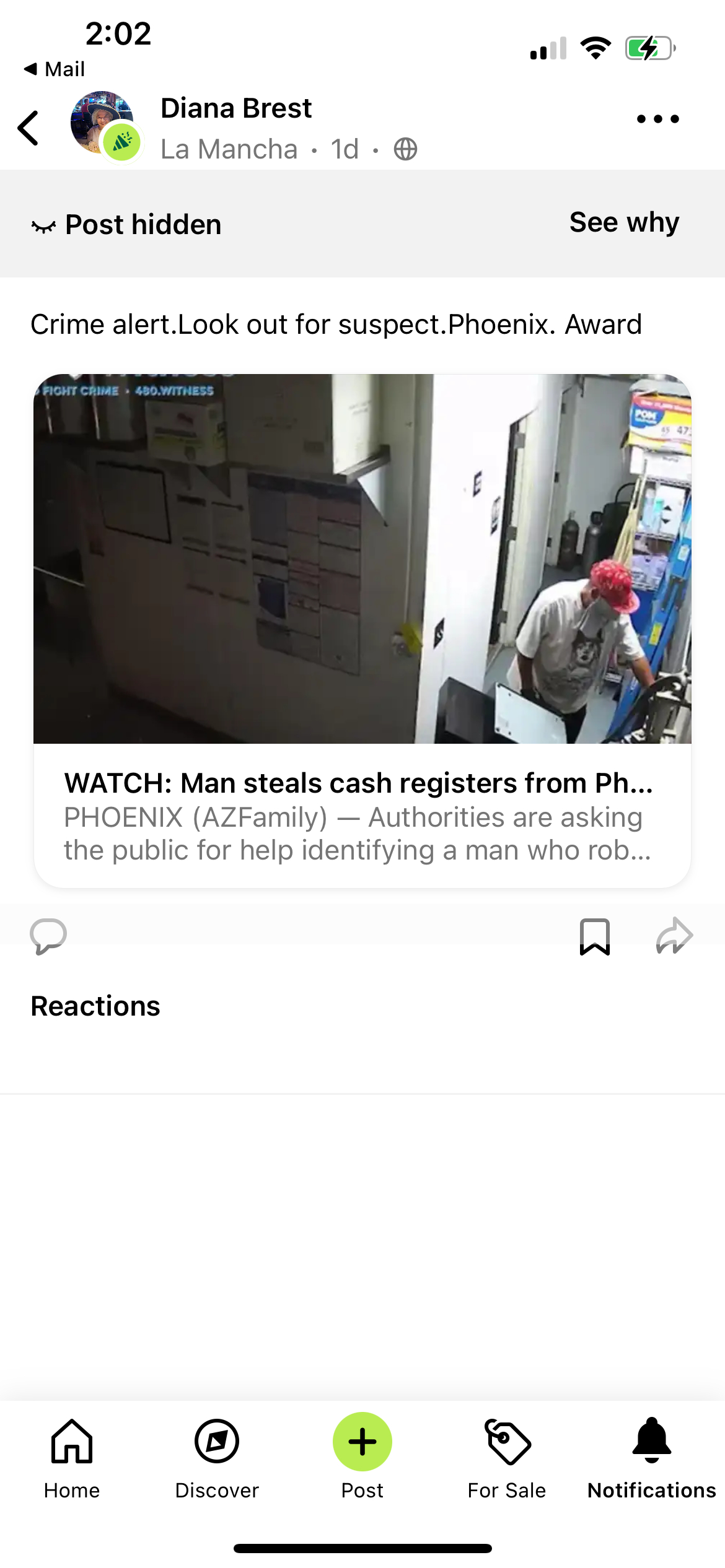 I would post about true crimes in AZ,I would get reported. Then,I post about the lightrail bringing more crimes in neighborhoods,& I would get reported. People target me constantly in nextdoor,yet,the abusers,the felons are allowed to attack me & stay on Nextdoor. Now,my account is suspended. I post about health awareness,recommendations,news reports,& I get reported.Nextdoor needs to shutdown..