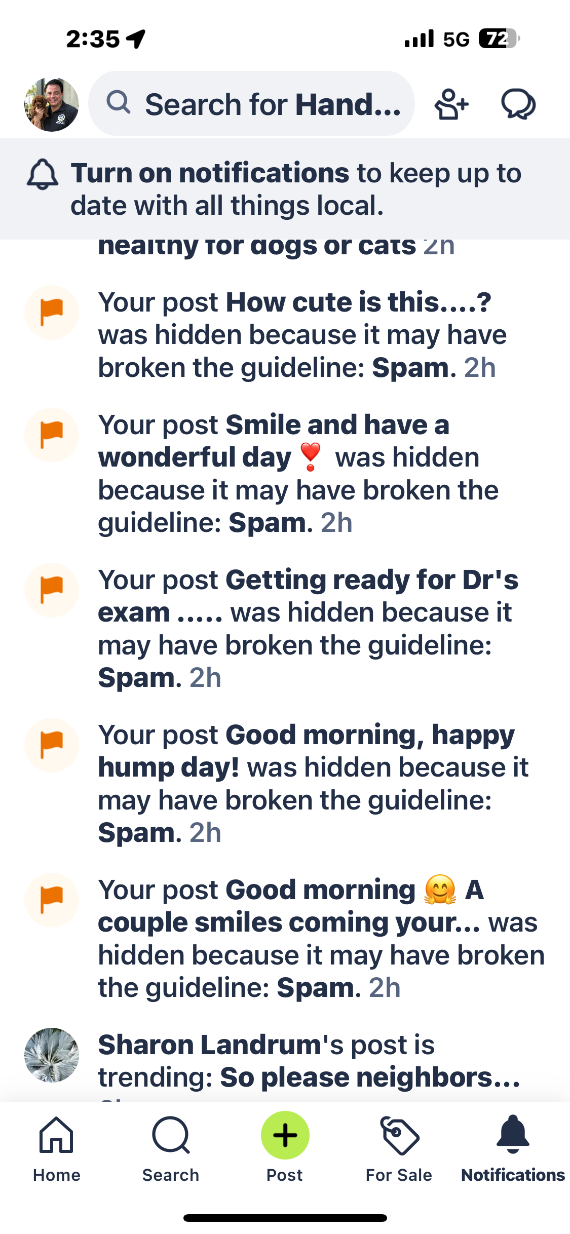 Nextdoor for 5 years has someone reporting all my posts. My post are not derespectful or spams at all. I post items for sale, job recommendations,businesses meds recommendations, events, cancer help. I appeal & none of my appeals get appreciated bed at all. They do nothing to those reporting my posts at all.