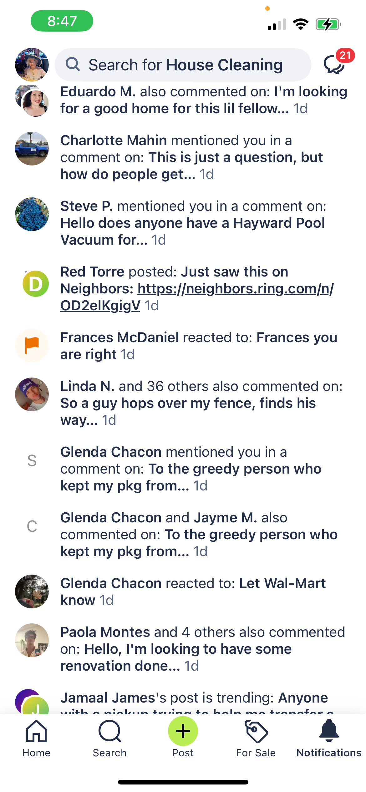 Soooo you have irresponsible pet owners losing their pets, people complaining about street trash, homeless or someone with a jacket if its too hot. Nothing but, old many racist folks who can't navigate FB or IG so Nextdoor it is. I saw a post about a guy saying he's going to go "talk to some homeless people" and I called him a bully. Sounds like bullying when you can call the law. The other seniors reported my comment but, not his. So my response was fitting because bullies support bullies.