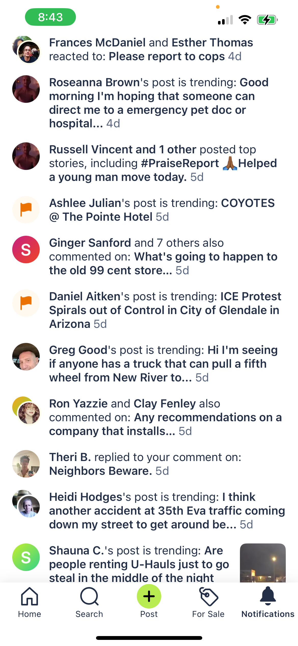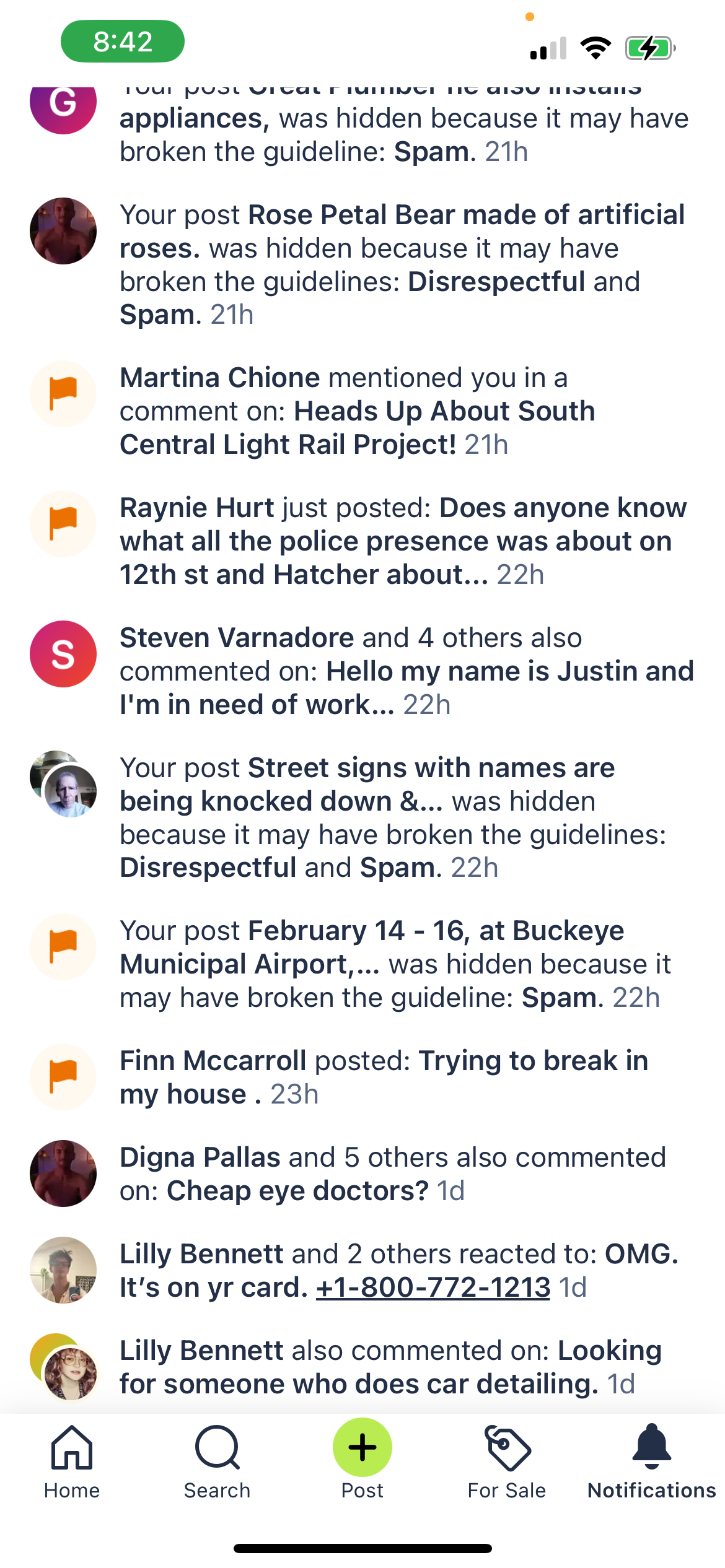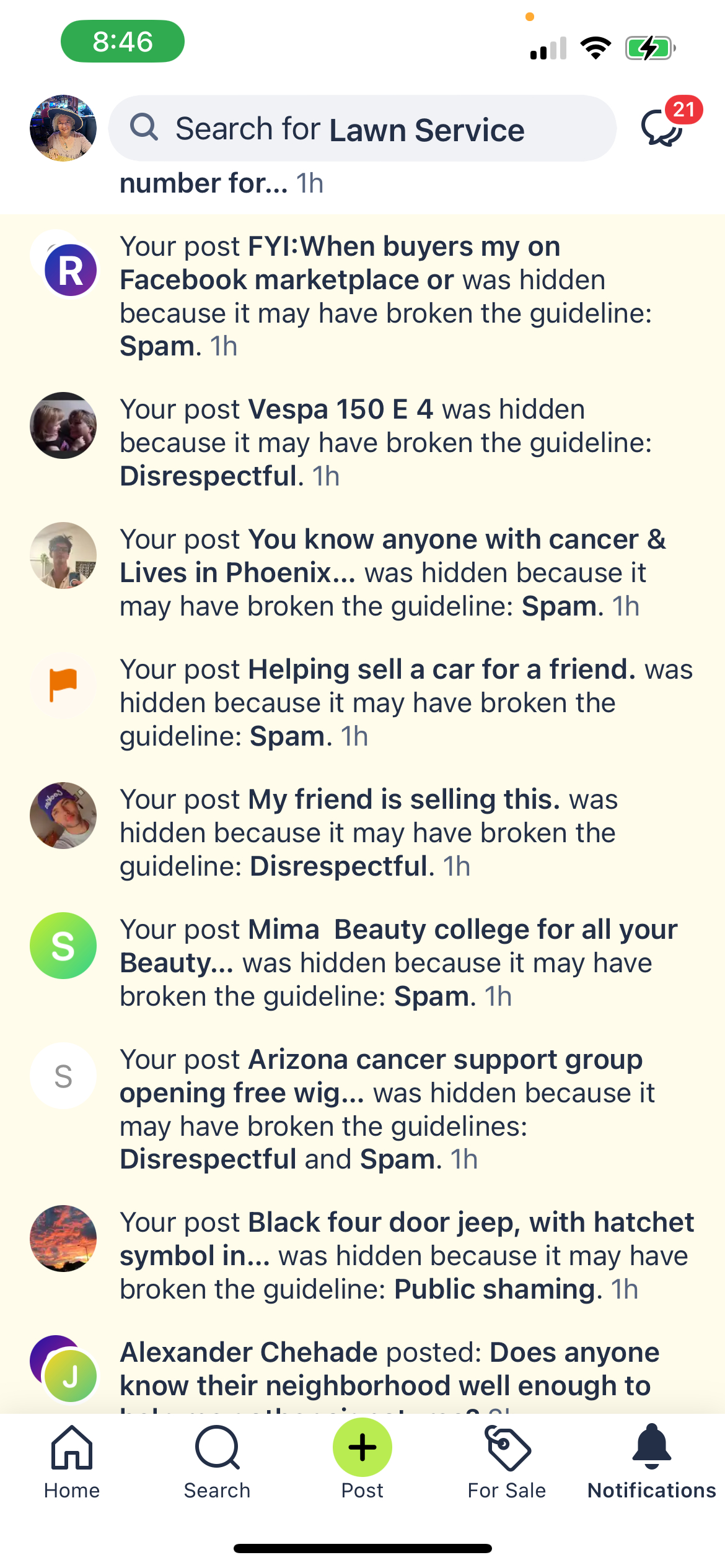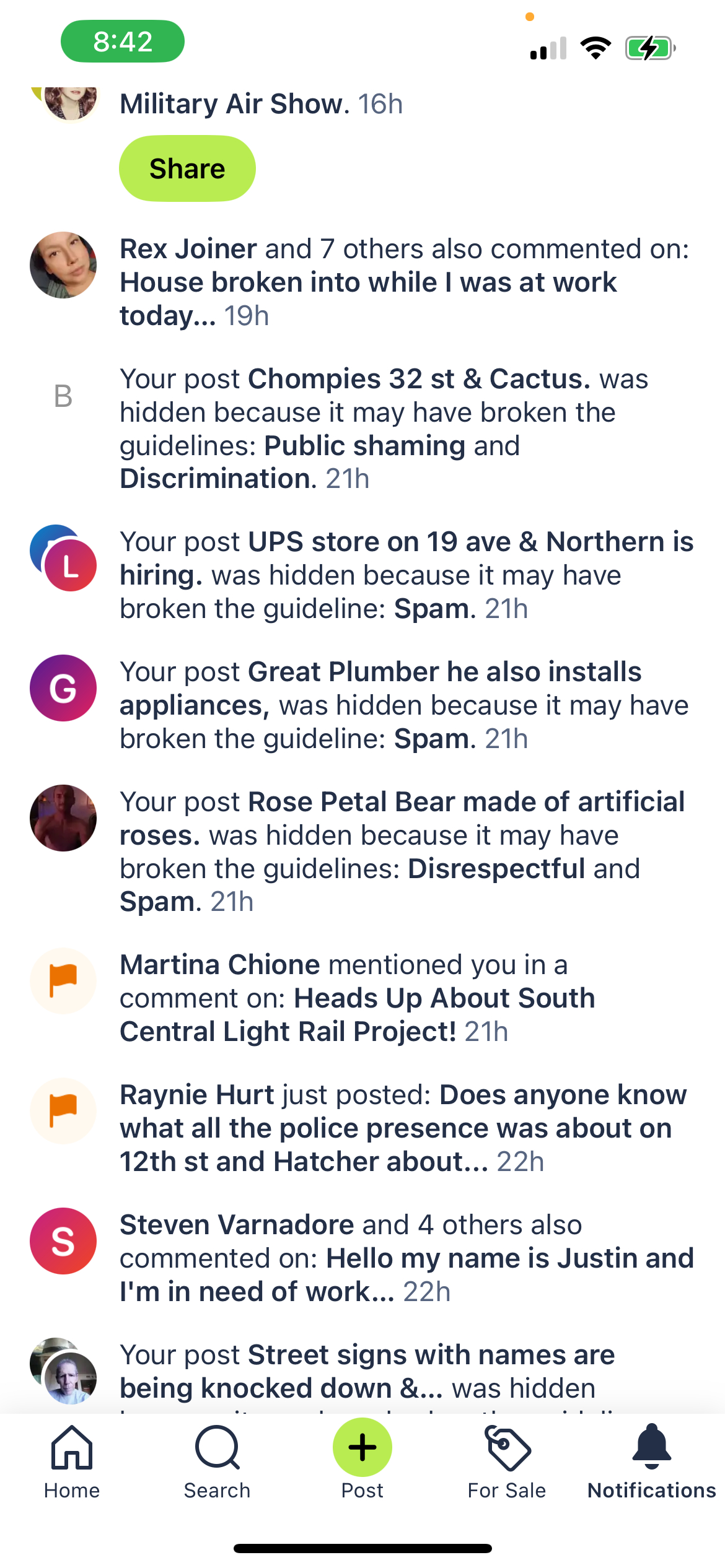 I post all the time to let people know about SS news, and city of Phoenix Black Trash cans. I also report crimes & police alerts. Everytime I post, people report them all. I get told I am being desrespectful, when I am helping.