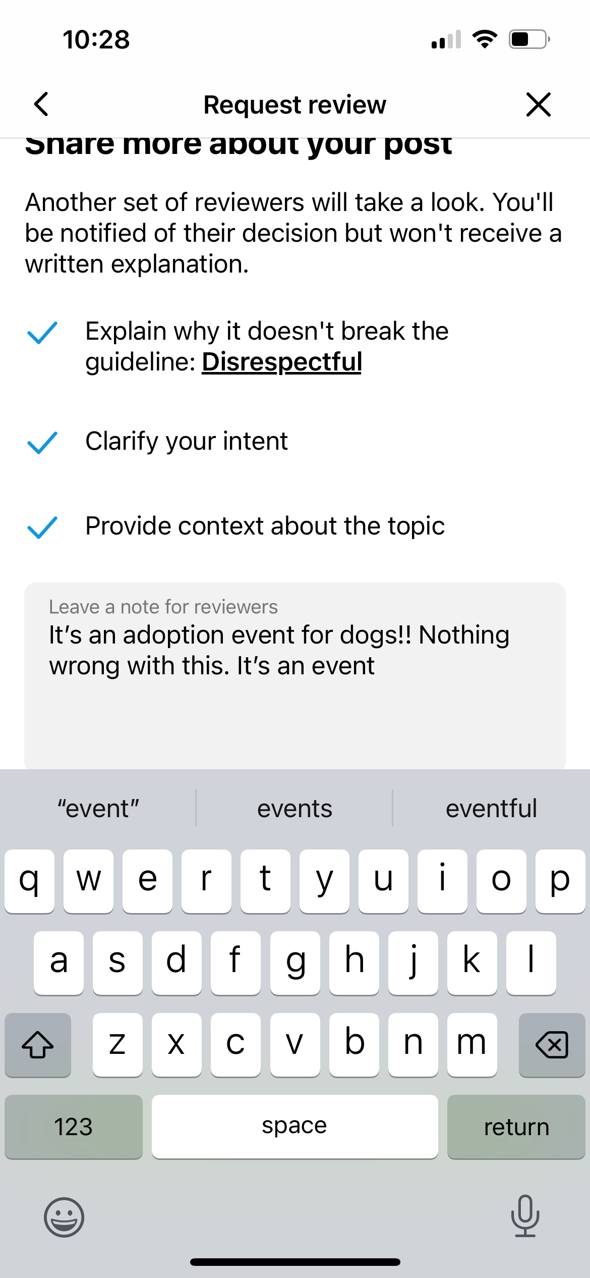 Adoption pet events, homeless rights, etc. Nextdoor has someone reporting my post every day,as desrespectful.I appeal & my appeals get denied.Now my account is in read only.I want my account back