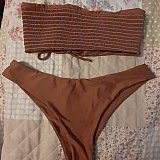 I'm always a bit skeptical of online retailers with such low prices, but the bikini I got is such great quality. The top is very flattering and super comfortable, and the straps don't fall off my shoulders. The bottoms stay up really well and they're not too cheeky, but also very flattering. The ribbed detail makes it look way more expensive than it is. I get so many compliments on this bathing suit! I've also washed it and worn it in chlorine all summer and it hasn't faded or shown any signs of wearing.