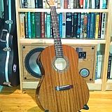 Now the guitar... the wood is amazingly beautiful and excellent quality. The build of this guitar is stunning and the action out of the box is just right. Even with a 3/4 scale neck, this thing is set up like an electric guitar, and easy to play! The resonance on this is amazing. I've owned a Baby Taylor and other small scale guitars in the past. None of them with that kind of resonance- the notes just sing out forever. The overall sound is excellent for a small-bodied guitar, not the sound of a full scale, but more than great for at home practice and playing with friends.