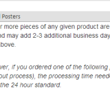 Ordered 4 UNFRAMED posters for a housewarming gift from Zazzle that ranged between 8x10 & 10x13 on 03/09/2015. On their website it indicates in one section, that it takes 24 hours to "manufacture" the *unframed* poster. HOWEVER, if you order 50 or more (I only ordered 4!) it takes longer. OH! But then it says at the bottom, "it may take longer than 24 hours" REALLY?!? That makes no sense! Why would you indicate it only takes 24 hours but then retract what you said in the same section? Because I ordered standard shipping, it indicated another 5-12 business days to receive it. Almost 2 weeks went by, and only until I inquired about why it wasn't shipped yet, I THEN recieved a confirmation email that it was shipped. In my opinion, they SAT on my order. It is now almost a month later, and I didn't receive my order, so I requested a refund. Despite the prompt customer service I received, I am extremely disappointed that they operate a business that they CANNOT 100% GUARANTEE. This is false advertising! I ordered these as a gift for a housewarming, and had to go to this housewarming EMPTY HANDED. I better receive EVERY LAST CENT BACK *including* shipping! I really wanted these prints! I really liked them on the site! So, I'm disappointed that I looked for a gift on a site that claims "100% **GUARANTEED** when its NOT!