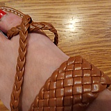 When I walk in the brown and white shoes they will not stay on my feet. The straps are too loose. Both have creases. Again, I show the picture of the shoes on line and then as I received them.